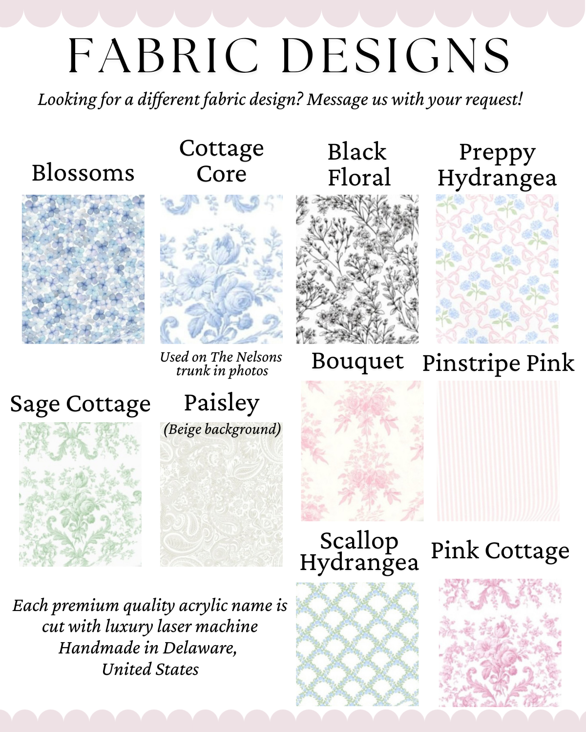 • If fabric design is not indicated in the personalization box then we will send a message. If a message is not responded to within 24 hours then the order may be cancelled.