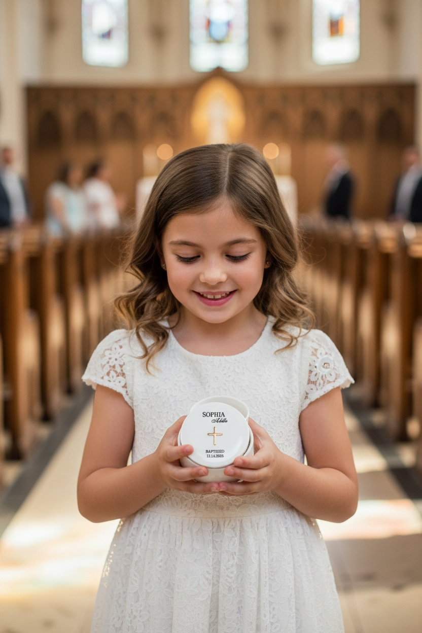 Β This personalized first rosary and baptism jewelry keepsake box is the perfect gift for a newborn girl. Ideal for a Christian baby gift, itβs a thoughtful choice for a Goddaughterβs baptism, a baby shower, or a new mom. It also makes a lovely addition to any nursery dΓ©cor. Whether youβre looking for an Easter gift for your daughter or granddaughter, a Christmas gift for your niece, or a second birthday gift from a godmother, this custom keepsake box is a beautiful and meaningful option.