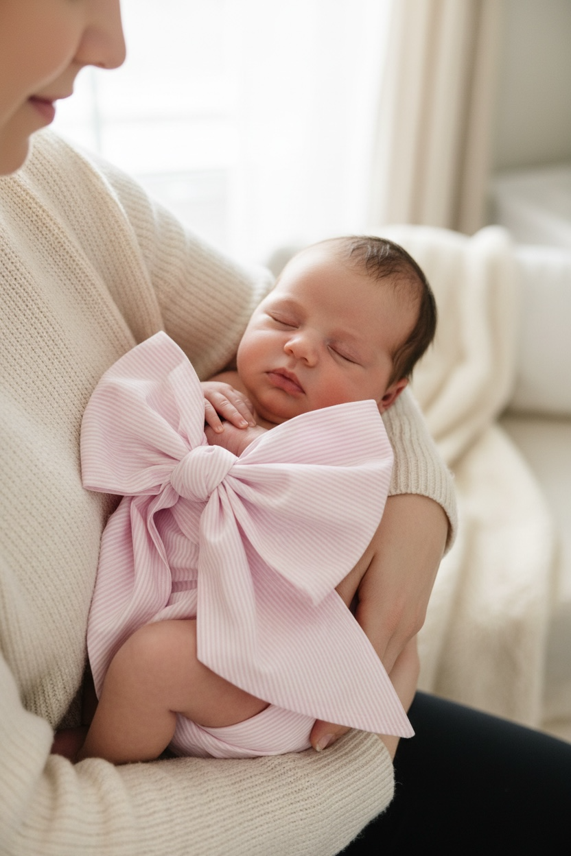 Capture precious first moments with this personalized newborn baby sash, customized with an embroidered initial bow for a one of a kind look. Perfect for newborn photoshoots, hospital coming home outfits, and baby swaddle styling, this custom monogram baby sash brings a classic and sentimental touch to every photo. Crafted from soft, gentle fabric, it is suitable for baby boys and baby girls and doubles as a keepsake parents will treasure. Ideal for birth announcement photos, newborn picture sessions, baby shower gifts, and personalized gifts for new parents celebrating their little one.