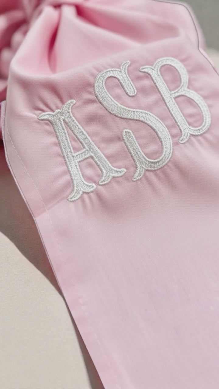 Create the sweetest first newborn photos with this custom monogram baby sash, featuring a beautifully embroidered monogram.