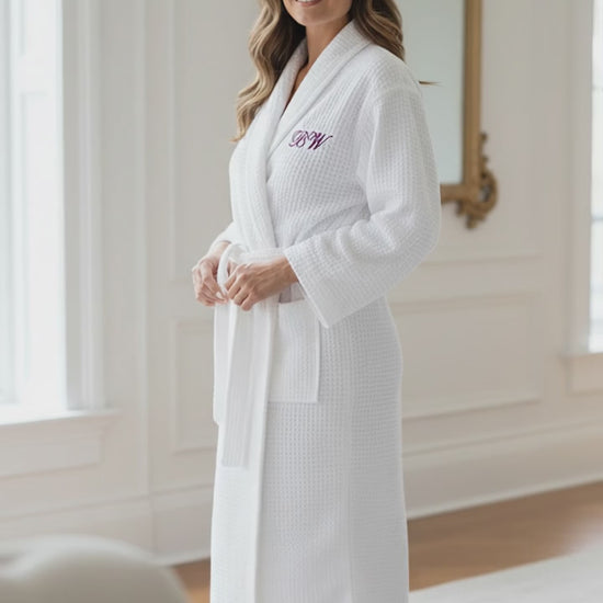 Initial Robe Embroidered Women Waffle Knit