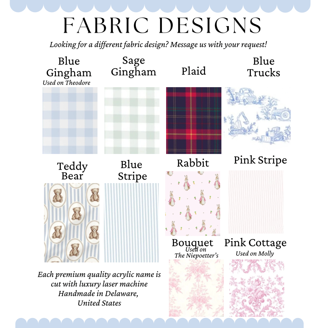 • If fabric design is not indicated in the personalization box then we will send a message. If a message is not responded to within 24 hours then the order may be cancelled.