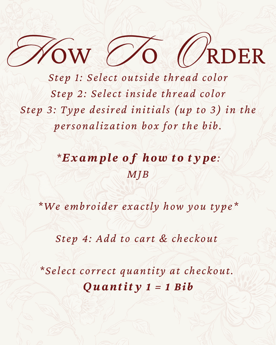Step 3: Type desired initials (up to 3) in the personalization box for the bib.