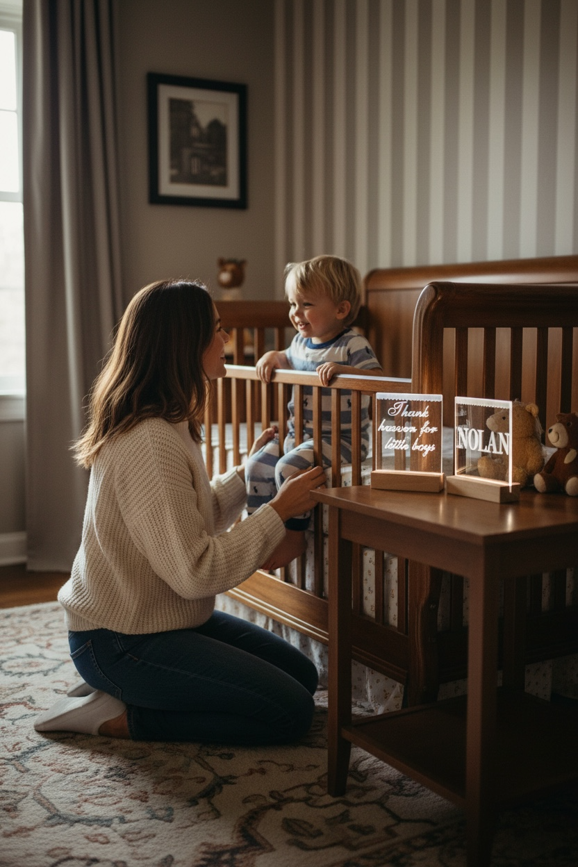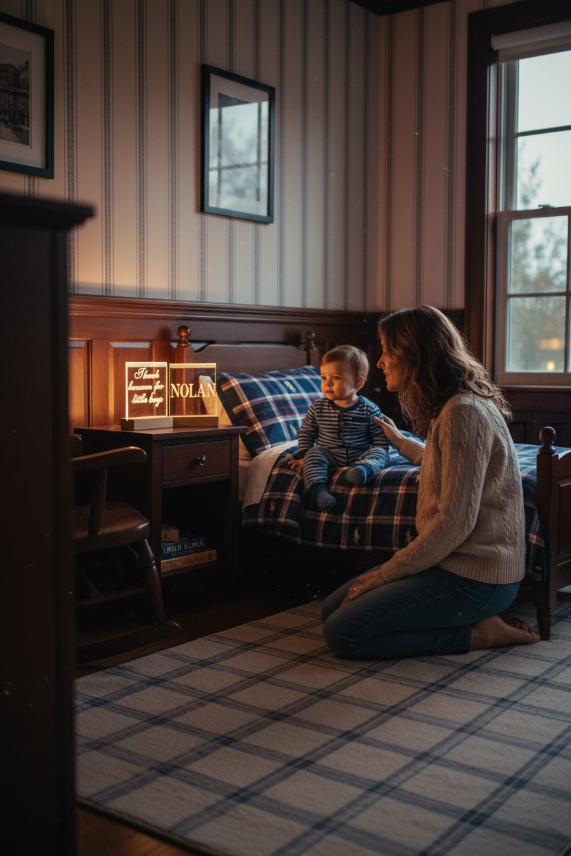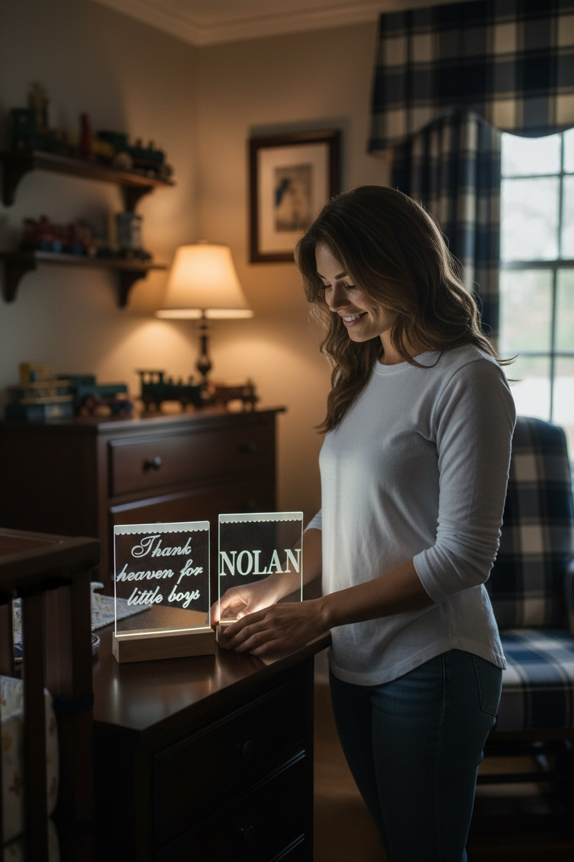 Brighten your little oneβs room with this personalized nightlight with name, a thoughtful keepsake for boys of all ages. Perfect as boy nursery decor, this custom light makes a meaningful toddler gift, grandson first birthday gift, or boy baby shower gift that parents will treasure.