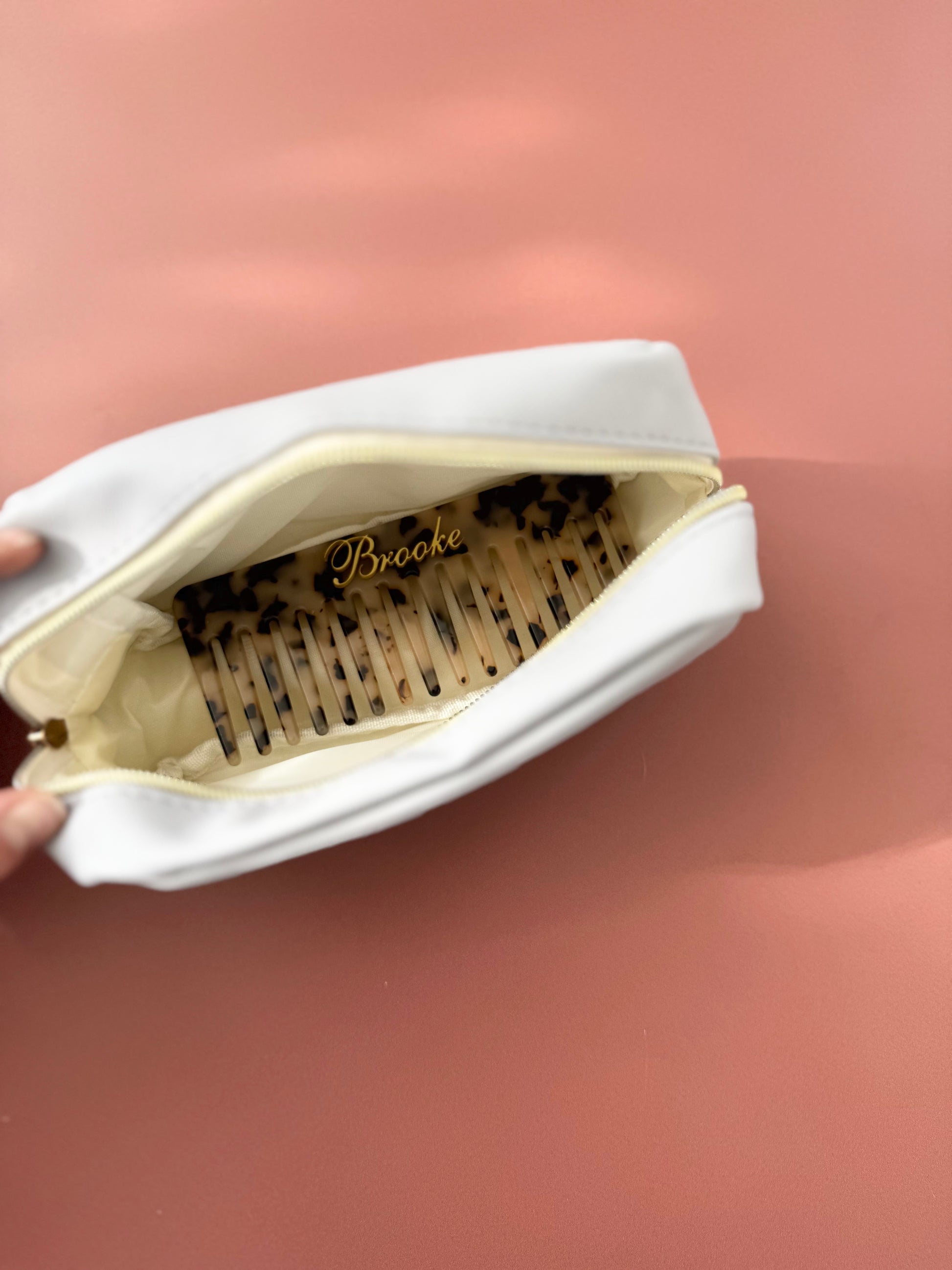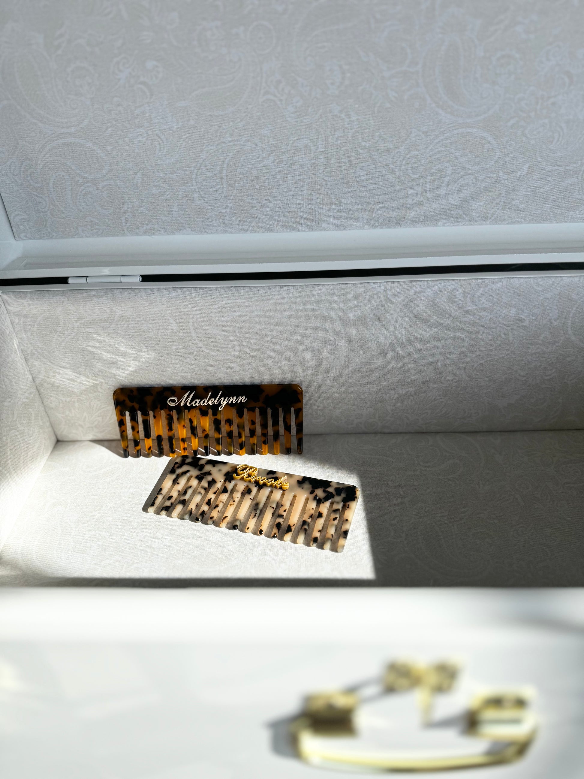This luxurious personalized tortoise shell hair comb with her name makes a timeless and elegant keepsake she will cherish for years to come.
