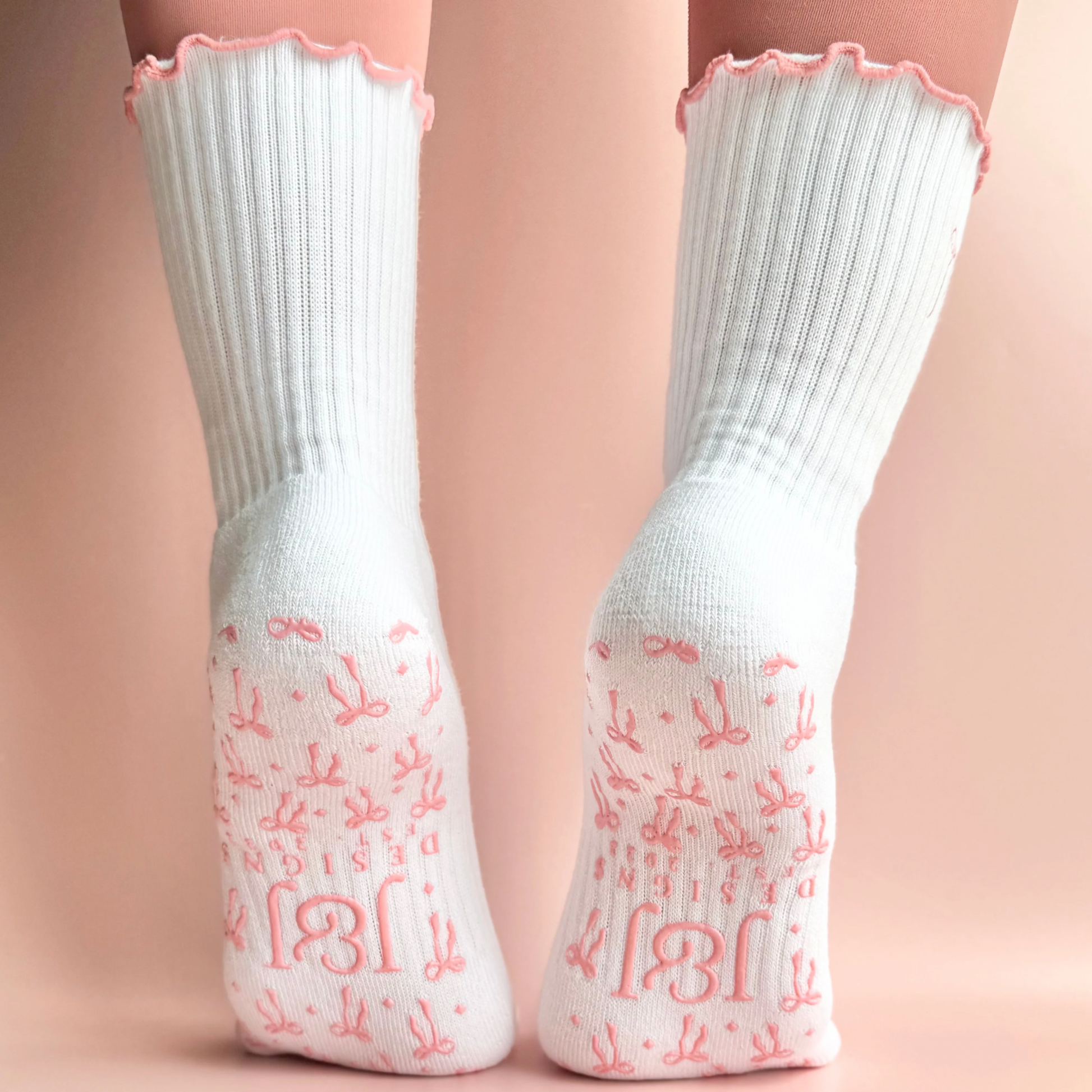 Step into the studio with style in our half-calf aesthetic bow non-slip grip socks. The perfect grip socks for Pilates, yoga, barre, and more!